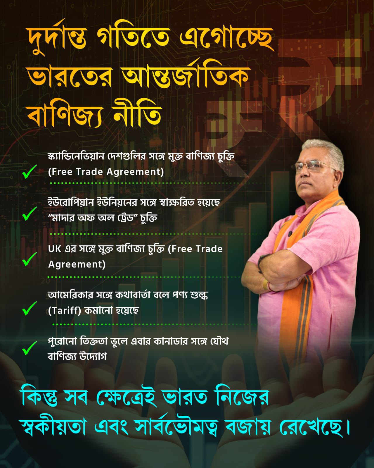 BJPBusiness শুল্কযুদ্ধের বাইরে ভারতের বাণিজ্যনীতিতে ‘ফ্রি ট্রেড’-এর বার্তা: দিলীপ ঘোষ indinews_user 4 hours ago4 hours ago 0 Read More