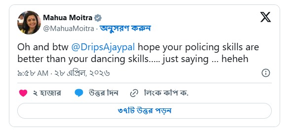 আরও একটি ভিডিও প্রকাশ করে মহুয়া মৈত্র মন্তব্য করেন, নাচের চেয়ে নিজের পেশা অর্থাৎ পুলিশি কাজে তিনি বেশি দক্ষ হবেন বলেই আশা করা যায়।