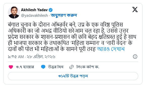 এদিকে এই ঘটনা নিয়ে প্রতিক্রিয়া জানিয়েছেন উত্তরপ্রদেশের প্রাক্তন মুখ্যমন্ত্রী অখিলেশ যাদবও। তিনি সামাজিক মাধ্যমে লিখেছেন, যে ছবি ও ভিডিও সামনে এসেছে তা উত্তরপ্রদেশের জন্য লজ্জাজনক এবং মহিলাদের প্রতি অসম্মান প্রদর্শনের একটি উদাহরণ।
