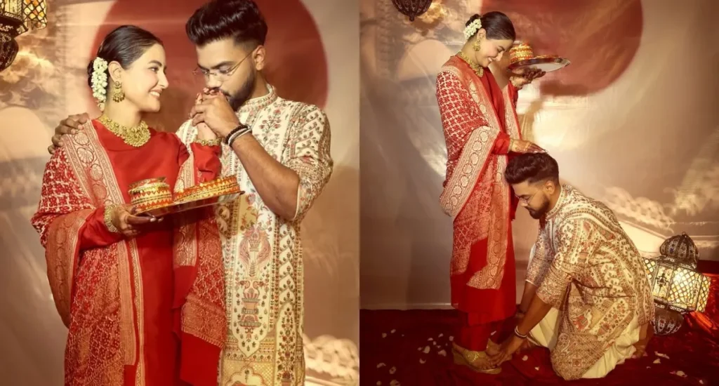 টেলিভিশন এবং ফ্যাশন দুনিয়ার জনপ্রিয় অভিনেত্রী হিনা খান ২০২৫ সালে তাঁর স্বামী রকি জৈসওয়াল-এর সঙ্গে প্রথম করওয়া চৌথ উদযাপন করেছেন। এই বিশেষ দিনটি তাদের সম্পর্কের এক অনন্য মাইলফলক হিসেবে চিহ্নিত হয়েছে। উভয়েই দিনটি আনন্দ ও প্রেমের সঙ্গে কাটিয়েছেন। বিশেষ মুহূর্তের মধ্যে ছিল এমন একটি দৃশ্য, যেখানে রকি হিনার পায়ে হাত দিয়ে শ্রদ্ধা ও ভালোবাসার প্রতীক হিসেবে সৌজন্য প্রকাশ করেছেন, যা ফ্যানদের হৃদয় ছুঁয়ে দিয়েছে।