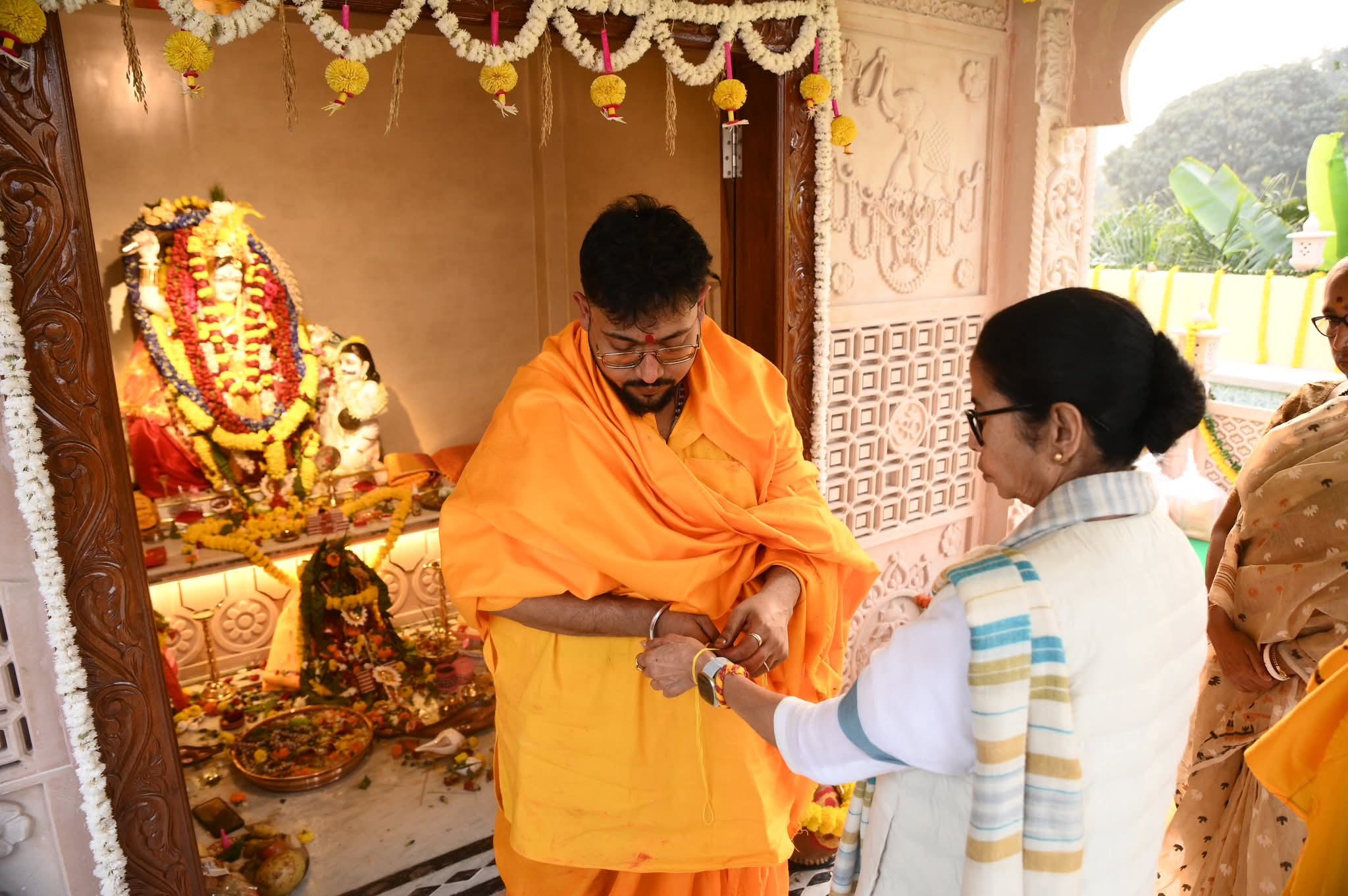 মকর সংক্রান্তির পবিত্র লগ্নে কালীঘাটের বগলা মায়ের মন্দিরে গিয়ে যেন নিজের অন্তরের সমস্ত আকুতি মেলে ধরলেন মুখ্যমন্ত্রী মমতা বন্দ্যোপাধ্যায়। ভক্তিভরে মায়ের চরণে প্রণাম জানিয়ে রাজ্যবাসীর দীর্ঘায়ু, সুখ ও শান্তির জন্য প্রার্থনা করলেন তিনি। সেই মুহূর্তে রাজনীতি নয়, প্রশাসন নয়— ছিল শুধু একজন সন্তানের মতো মায়ের কাছে আশ্রয় চাওয়ার দৃশ্য।