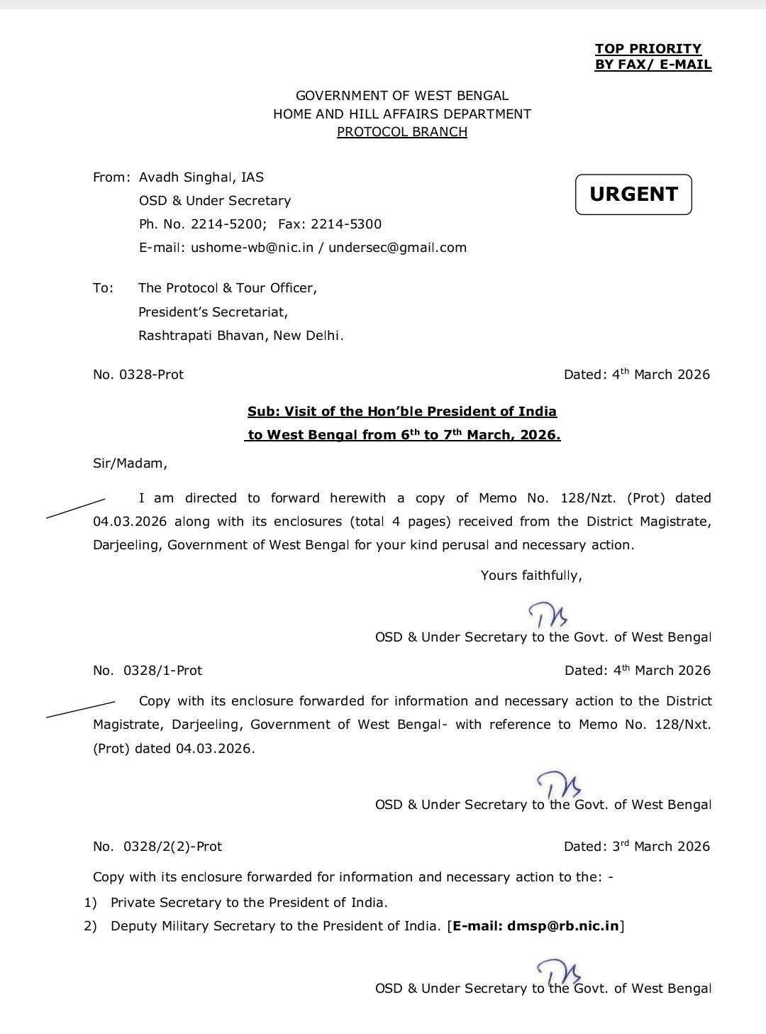 মুখ্যমন্ত্রী আরও স্পষ্ট করে বলেন, রাষ্ট্রপতিকে স্বাগত জানানো এবং বিদায় জানানোর ক্ষেত্রে সম্পূর্ণভাবে নির্ধারিত প্রোটোকল মেনেই কাজ করেছে জেলা প্রশাসন। রাষ্ট্রপতির সচিবালয় যে তালিকা অনুমোদন করেছিল, সেই তালিকা অনুযায়ীই শিলিগুড়ি পুরসভার মেয়র, দার্জিলিংয়ের জেলাশাসক এবং শিলিগুড়ি পুলিশ কমিশনার রাষ্ট্রপতিকে গ্রহণ ও বিদায় জানান। সেই তালিকায় মুখ্যমন্ত্রী হিসেবে তাঁর উপস্থিতি বা মঞ্চে থাকার কোনও পরিকল্পনাই ছিল না।