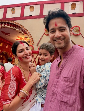 নুসরতের শেয়ার করা ছবি দেখেই বোঝা গেল, কোলে রয়েছে ছেলে ঈশান, পাশে দাঁড়িয়ে হাসিমুখে যশ। নবমী নিশি থেকে দশমীর এই আনন্দঘন মুহূর্তে পুরো পরিবার উপভোগ করেছে উৎসবের রঙিন আমেজ।