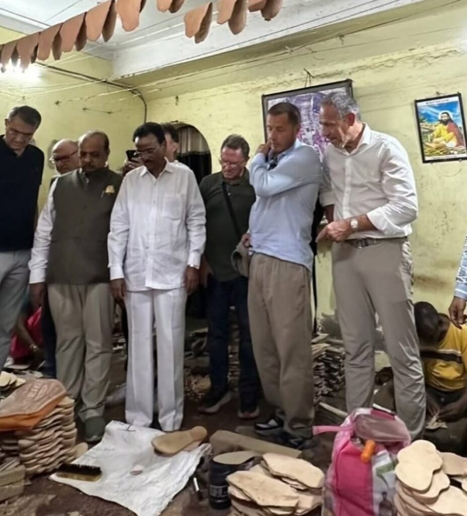 তারা স্থানীয় কারিগরদের সাথে দেখা করে, তাদের তৈরি করার ধাপ, নকশা এবং বিশেষ ‘কার টু কার্পেট’ ভাঁজযোগ্য চপ্পল তৈরির প্রক্রিয়া ঘনিষ্ঠভাবে পর্যবেক্ষণ করেন। এমনকি তারা স্থানীয় দোকানদার ও জেলার কালেক্টর আমোল ইয়েদগে-র সঙ্গেও সাক্ষাৎ করেন।