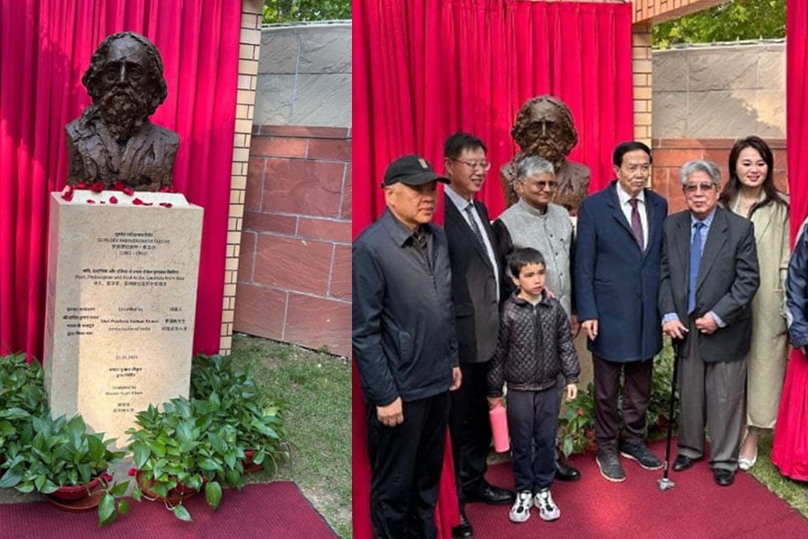 চিনের রাজধানী বেজিংয়ে ভারতীয় দূতাবাসে নতুন করে উজ্জ্বল হলো ভারত-চিনের ঐতিহ্যবাহী বন্ধুত্বের প্রতীক — বিশ্বকবি রবীন্দ্রনাথ ঠাকুরের মূর্তি। চিনের বিখ্যাত ভাস্কর ইউয়ান শিকুনের শিল্পীহাতে গড়া এই মূর্তি শনিবার আনুষ্ঠানিকভাবে উন্মোচন করা হয়। অনুষ্ঠানের আয়োজন করেছিল ভারতীয় দূতাবাস, যেখানে উপস্থিত ছিলেন দুই দেশের বিশিষ্ট সাহিত্যিক, কূটনীতিক ও সংস্কৃতি-প্রেমীরা।