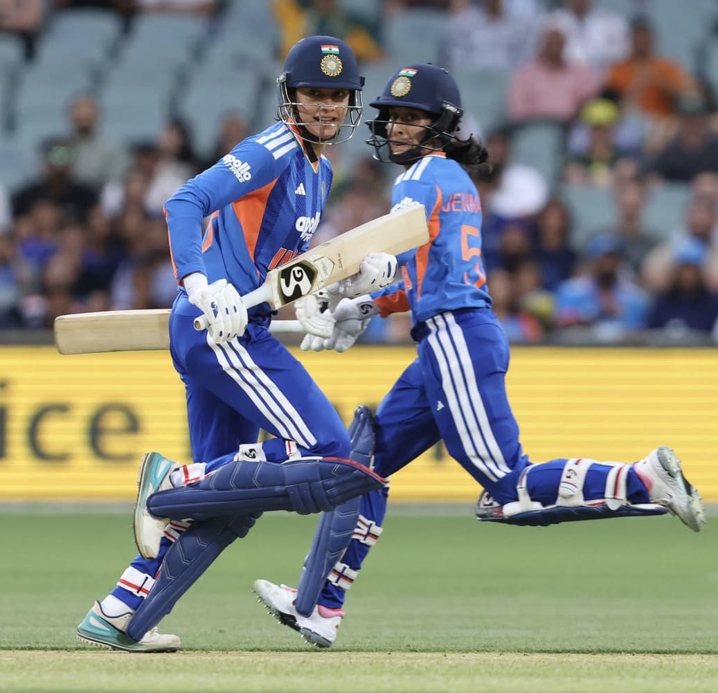 নিজস্ব সংবাদদাতা: অস্ট্রেলিয়ার বুকে দাপিয়ে বেড়াল ভারত। ২-১ ব্যবধানে টি-২০ সিরিজ জয় ভারতের মেয়েদের। প্রথমে ব্যাট করে স্কোরবোর্ডে ১৭৬-৬ তোলে ভারত। নেপথ্যে দুই বেস্টির দুরন্ত ব্যাটিং। ভারতের ১৭৬ রানের মধ্যে স্মৃতি মান্দনা এবং জেমিমা রদ্রিগেজের পার্টনারশিপ ১২১ রানের। দুজনের খাতাতেই অর্ধশরতান। জেমির ৫৯ এবং স্মৃতির ৮২। স্মৃতির এই রান রেকর্ড গড়েছে। স্মৃতির শনিবারের রান অস্ট্রেলিয়ার বুকে করা টি ২০ ফরম্যাটে কোনও ভারতীয়র সবচেয়ে বেশি স্কোর।