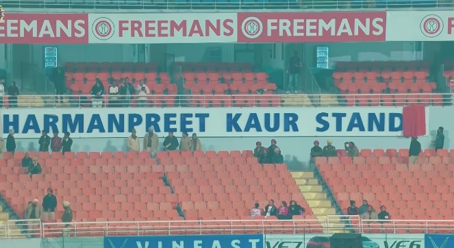 যে মাটিতে খেলে বড় হওয়া, যে মাটি দুর্জয় শিখিয়েছে, যে মাটি নিজের, আজ সেই মাটিতে নাম খোদাই। বিশ্বকাপ জয়ের পর যেন সবচেয়ে বড় পুরস্কার পেলেন ভারতীয় অধিনায়ক হরমনপ্রীত কউর। পঞ্জাবের মল্লনপুর। এখানে রয়েছে মহারাজা যুদাবেন্দ্র সিং ইন্টারন্যাশনাল ক্রিকেট স্টেডিয়াম। এই স্টেডিয়ামের একটি গ্যালারির নাম করণ করা হল হরমনপ্রীতের নামে। নাম রাখা হল – হরমনপ্রীত কউর স্ট্যান্ড। এই নতুন নামকরণের উদ্বোধনী অনুষ্ঠানে বৃহস্পতিবার মা বাবার সঙ্গে উপস্থিত ছিলেন হরমনপ্রীত। সঙ্গে ছিলেন যুবরাজ সিং এবং হরমনপ্রীতের বান্ধবী নূপুর কাশ্যপ। এই অনুষ্ঠানের পরে হরমন জানান, বিশ্বকাপ জয়ের পর জীবনের অনেক কিছু বদলেছে। কিন্তু আমার জন্য এটা বিশেষ মুহূর্ত। যে মাটিতে আমি খেলা শুরু করেছি আজ সেখানেই আমার নামে স্ট্যান্ড। আমার জন্য গর্বের। পাঞ্জাব ক্রিকেট অ্যাসোসিয়েশনকে অনেক অনেক ধন্যবাদ।